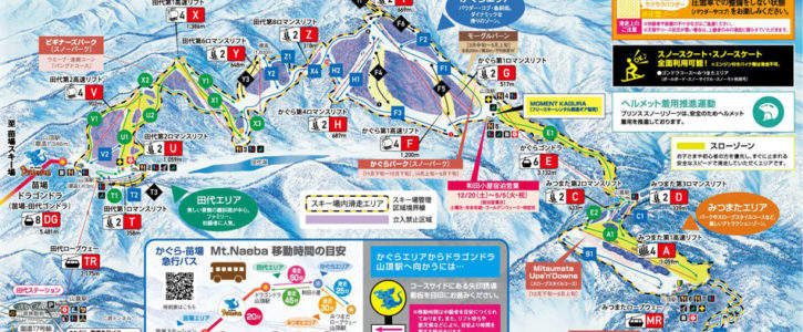 苗場スキー場・かぐらスキー場合計54コース!スキー・スノーボード以外にも遊びきれない楽しさいっぱいのBIGスケールなスノーリゾート!湯沢・上越エリアのみならず、国内でも最大級のビッグゲレンデ!広大なゲレンデは初心者から上級者までバランスよく設定され、滑り応え抜群!パウダーを楽しめる非圧雪エリア、レベル別に楽しめるパークエリアなどあらゆるニーズに応えます。 「ゲレ食」も楽しみの1つ。30近くの飲食店があります。