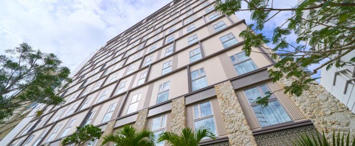 2022年4月オープン!国際通りまで徒歩10分、官公庁や主要施設が徒歩圏内に位置し観光やビジネスの拠点として絶好のロケーションです。 エントランスや館内には琉球石灰岩や花ブロック、やちむん等、沖縄の伝統的な素材を随所に使用し、街中のホテルでありながら、沖縄の心地よい風の流れと光を感じられる落ち着いたくつろぎの空間を演出。ロビーと一体になったリビングロビーや最上階には天然鉱石人工温泉の大浴場を備え、ワンランク上の上質なくつろぎをご提供いたします。